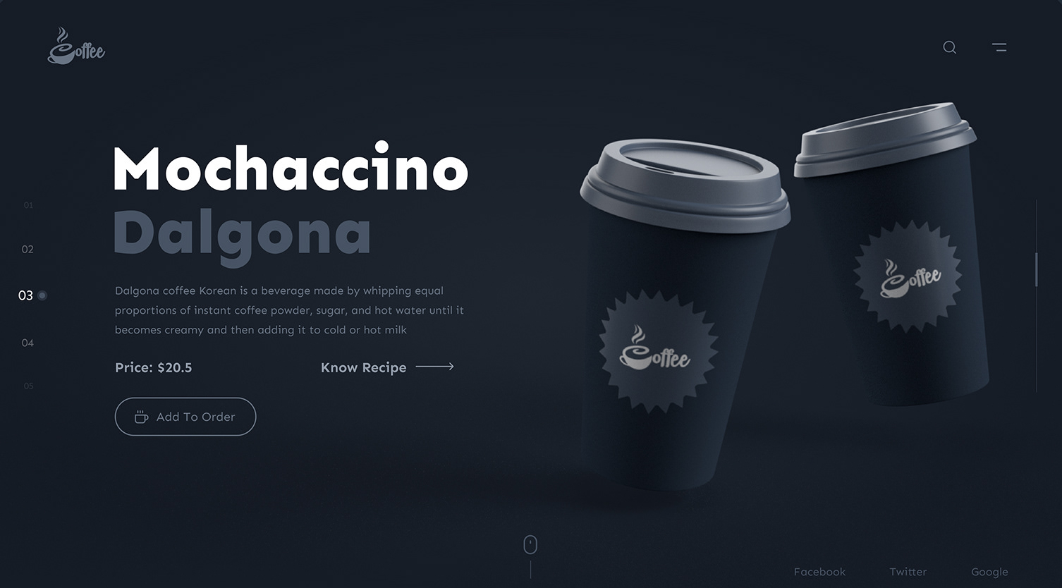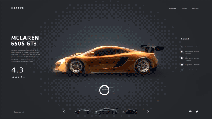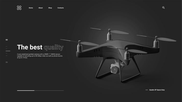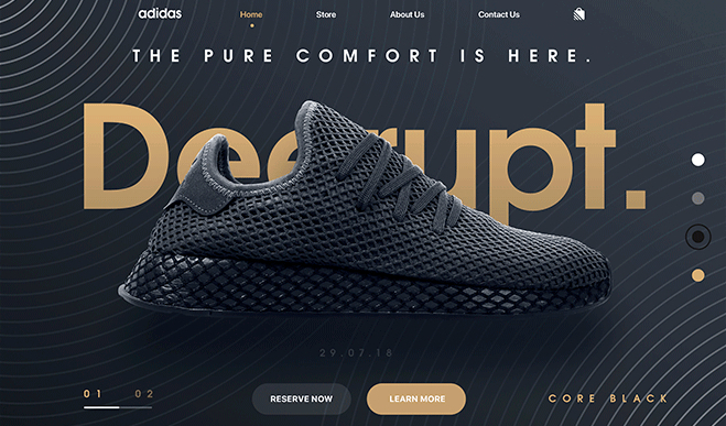 A responsive web page with a great design, using HTML, CSS, and JavaScript. It has a main page with an adaptive background and a top navigation bar for easy access to any section. It features product cards with images, names, descriptions, prices, and an add-to-cart button. The cards have a light movement effect on hover.
